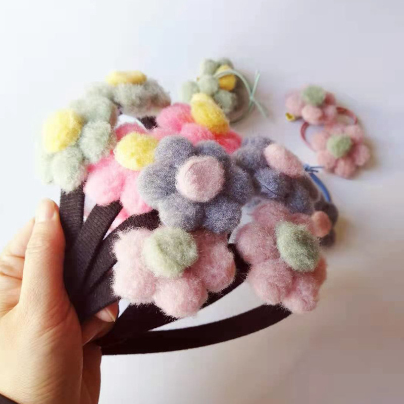 儿童可爱毛绒花朵发箍女孩韩版头饰红色包装套装头花发饰拍照头箍