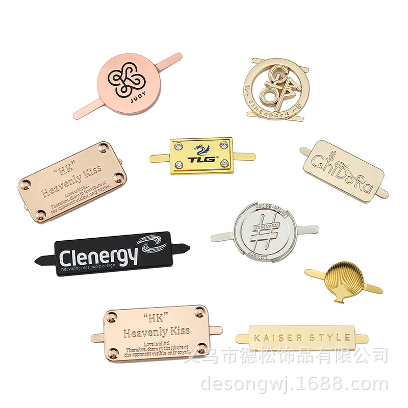带脚金属标牌锌合金箱包五金logo不锈钢腐蚀定制手提袋logo配件