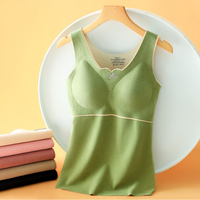 亲氧2.0德绒保暖内衣女胸垫一体无痕保暖背心发热恒温内搭打底衫