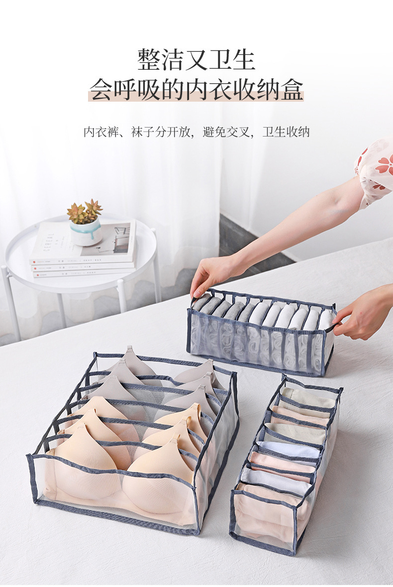 厂家内衣收纳盒布艺分格袜子文胸内裤收纳格子三件套整理盒批发
