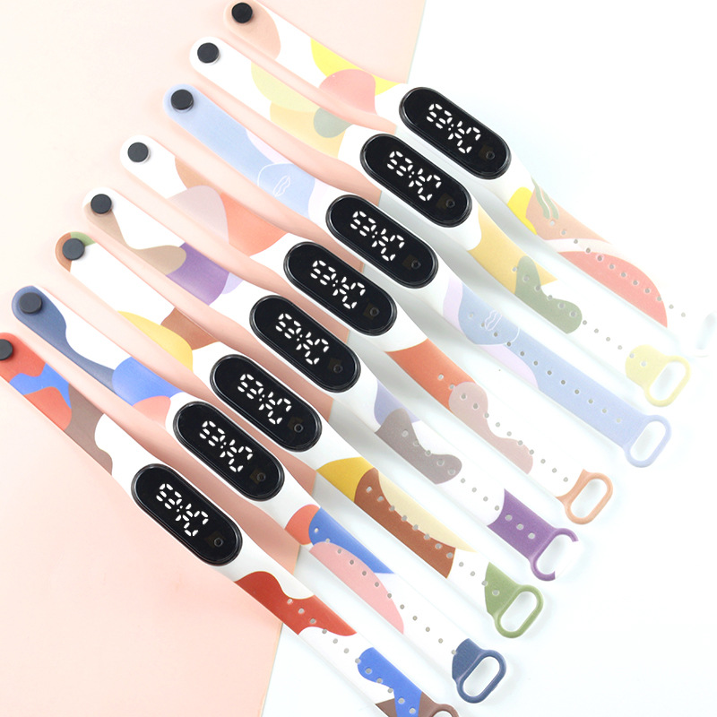 手环新款莫兰迪撞色LED电子表学生儿童潮流简约印花米3/4时尚手表