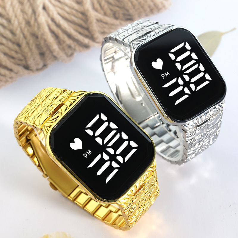 跨境新款大字钢带腕表男大表盘watch厂家批发商务LED电子手表