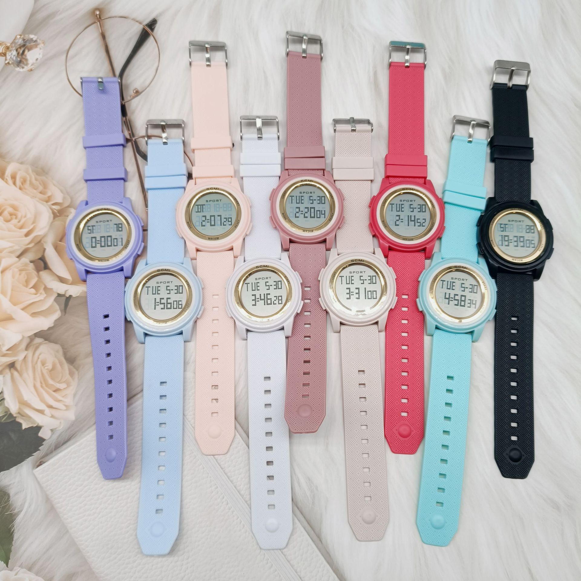 马卡龙超薄女款学生时尚潮流多功能电子手表大表盘电商多色LCD表