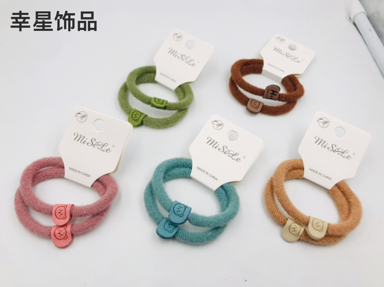 秋冬暖色毛绒标签头绳亮色系高弹发绳少女皮筋扎头发绳甜美简约马