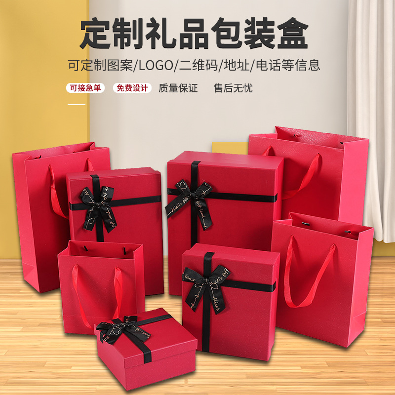 现货新年春节红色蝴蝶结礼物盒圣诞礼盒结婚伴手礼情人节包装盒子