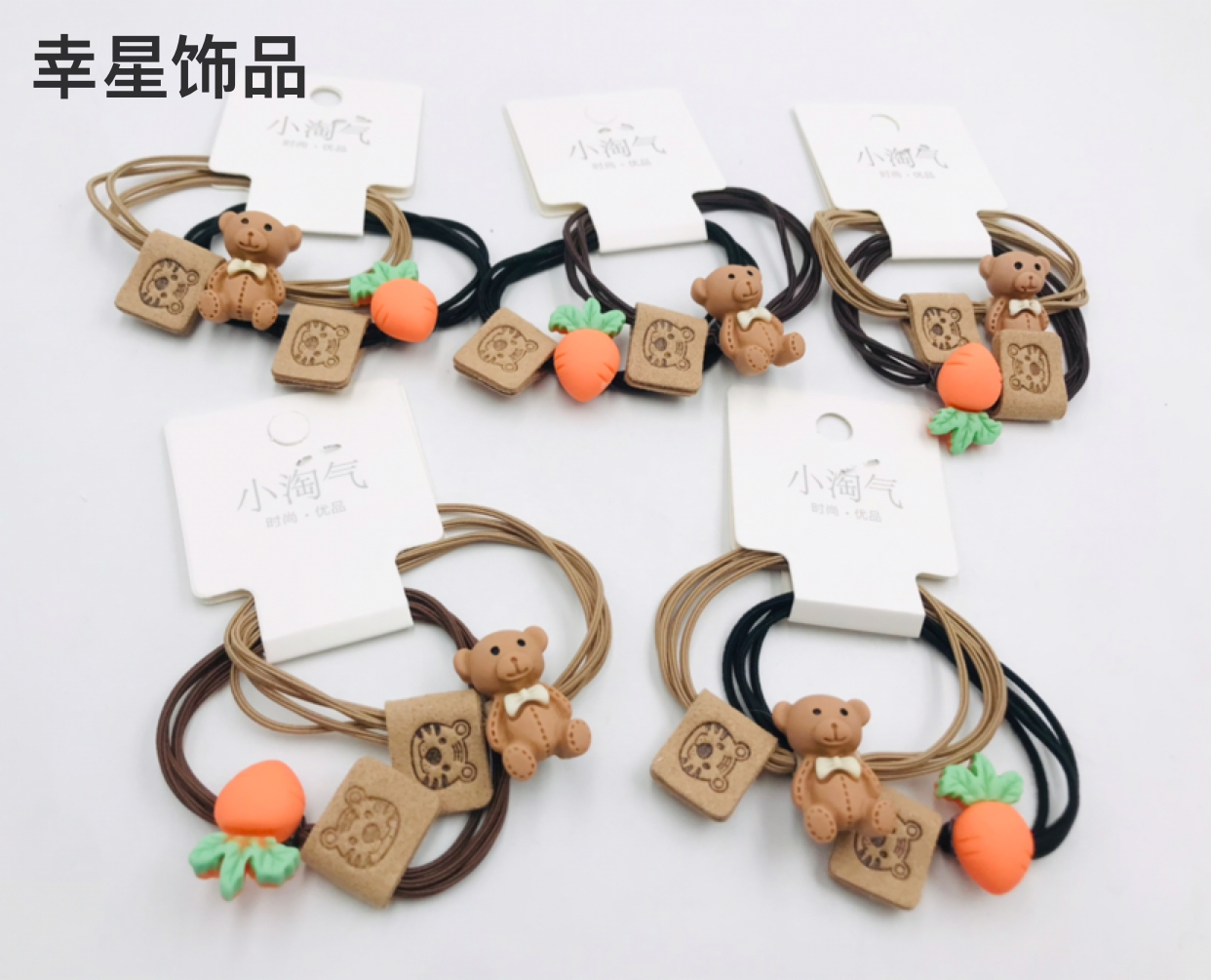 咖色系小熊皮筋可爱卡通发绳胡萝卜配件头绳铁标签头扎头饰