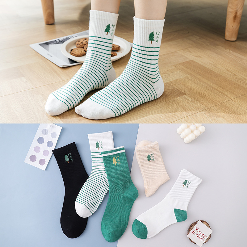 春秋新款日系绿色系松木女士中筒袜子 字母袜子女厂家批发
