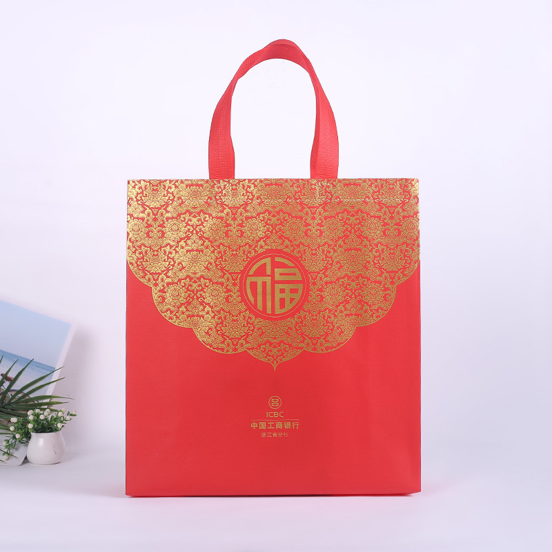 中国风覆膜无纺布手提袋 银行商务礼品袋加印logo 喜庆烫金包装袋