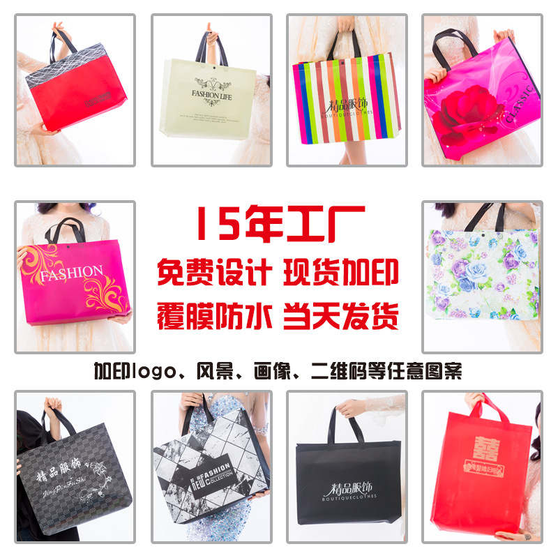 时尚玫瑰立体无纺布服装手提包装袋 黑色覆膜加印logo购物现货袋