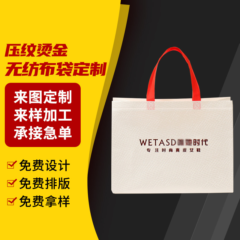 压纹烫金无纺布手提袋广告服装购物打包礼品包装袋加厚无纺布袋子