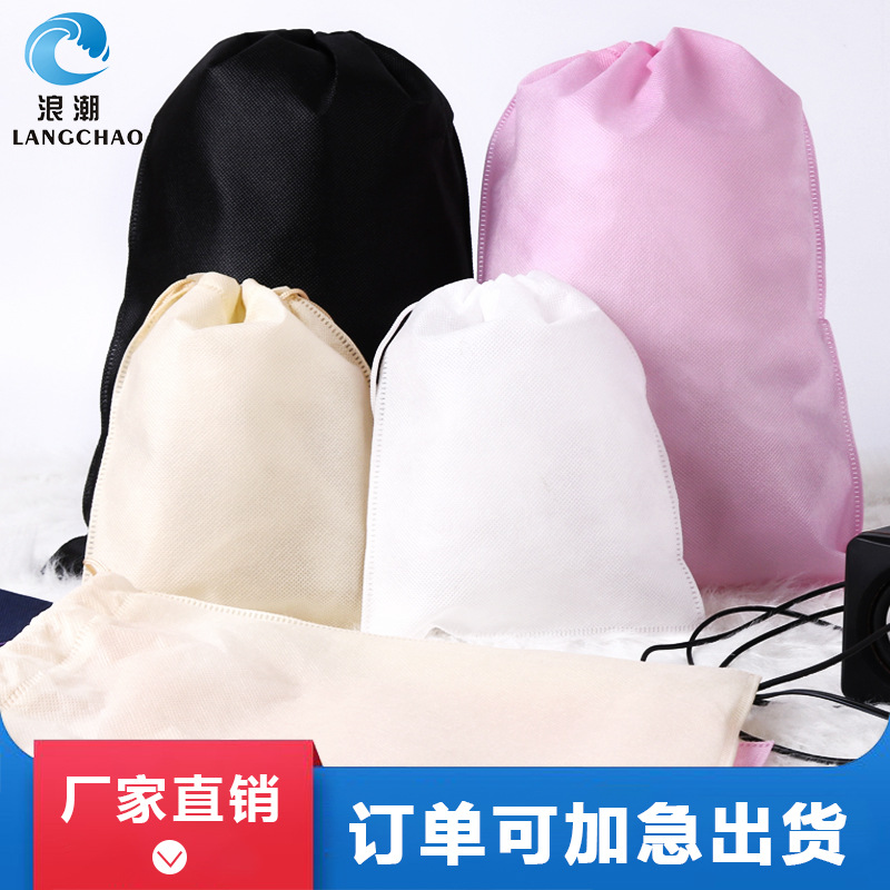 无纺布束口袋鞋子防尘包装袋子环保帆布双抽绳收纳袋现货印logo