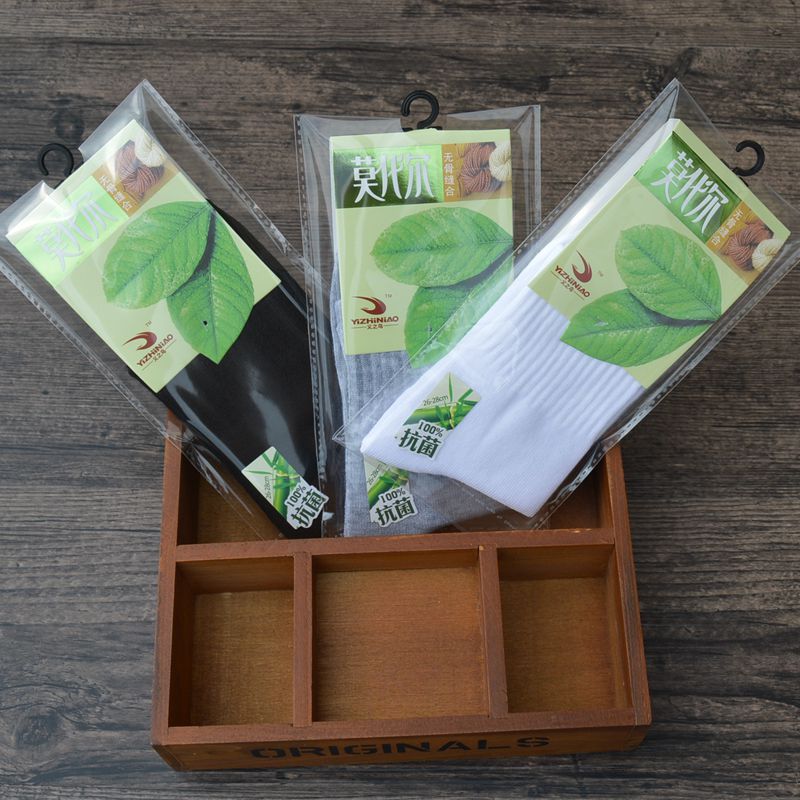 男士中筒涤棉袜子 纯色休闲男士袜 吸汗透气男袜 独立包装赠品袜