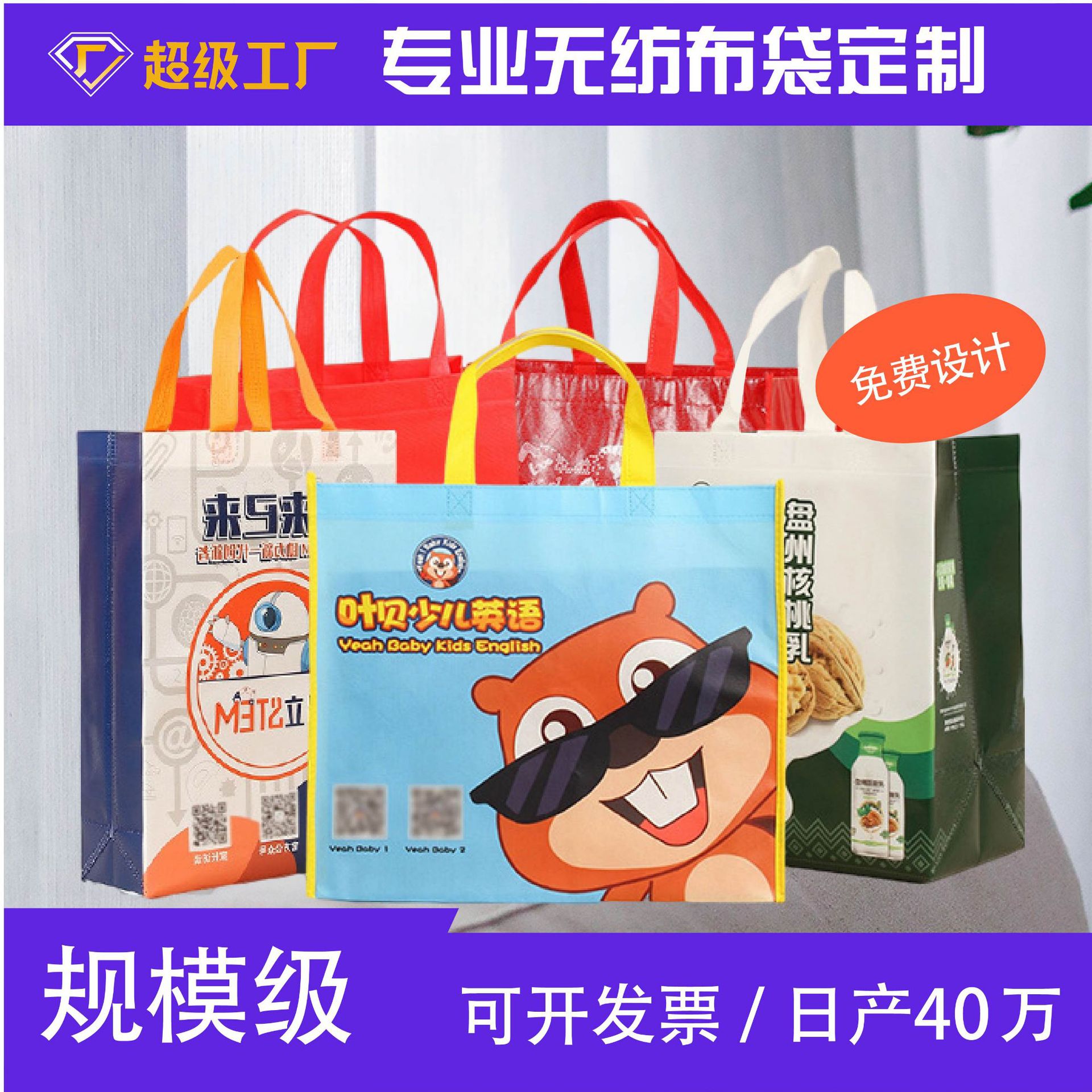 无纺布包装袋定做覆膜彩色外卖手提购物袋子无纺布立体袋定制logo