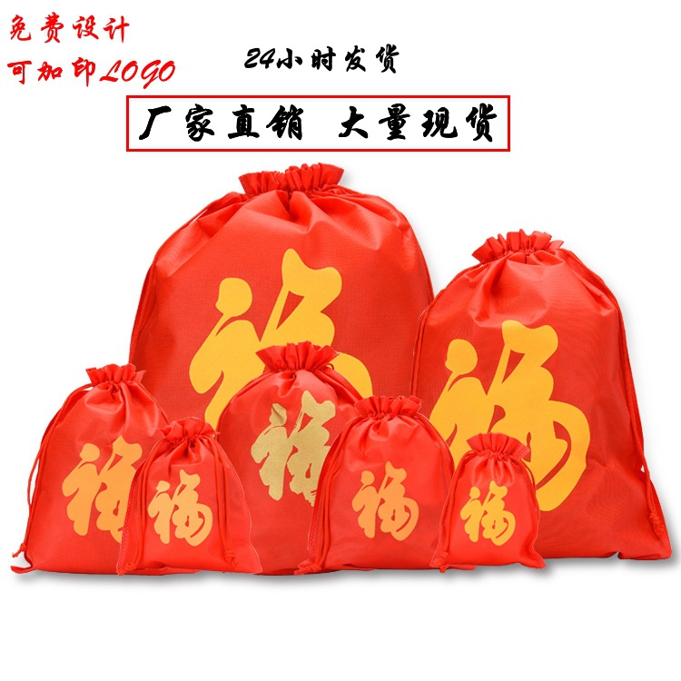 加大新年福袋大红色无纺布束口端午节粽子礼品包装袋可印广告LOGO