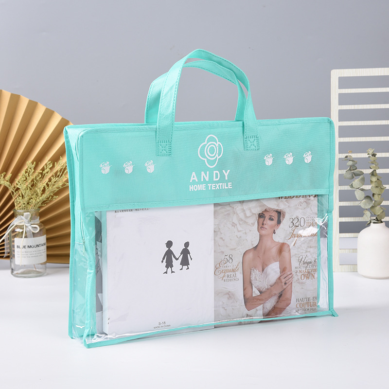 透明pvc加厚无纺布袋批发枕头家纺包装袋绿色枕芯手提拉链收纳袋