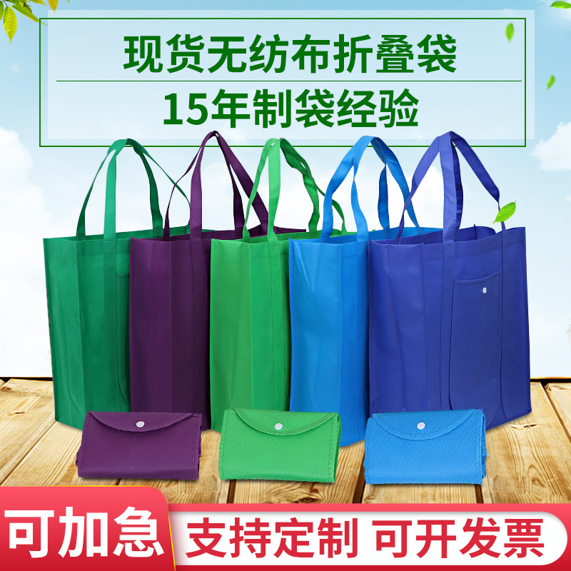 现货可折叠按扣无纺布袋彩印手提礼品包装袋广告宣传超市购物袋