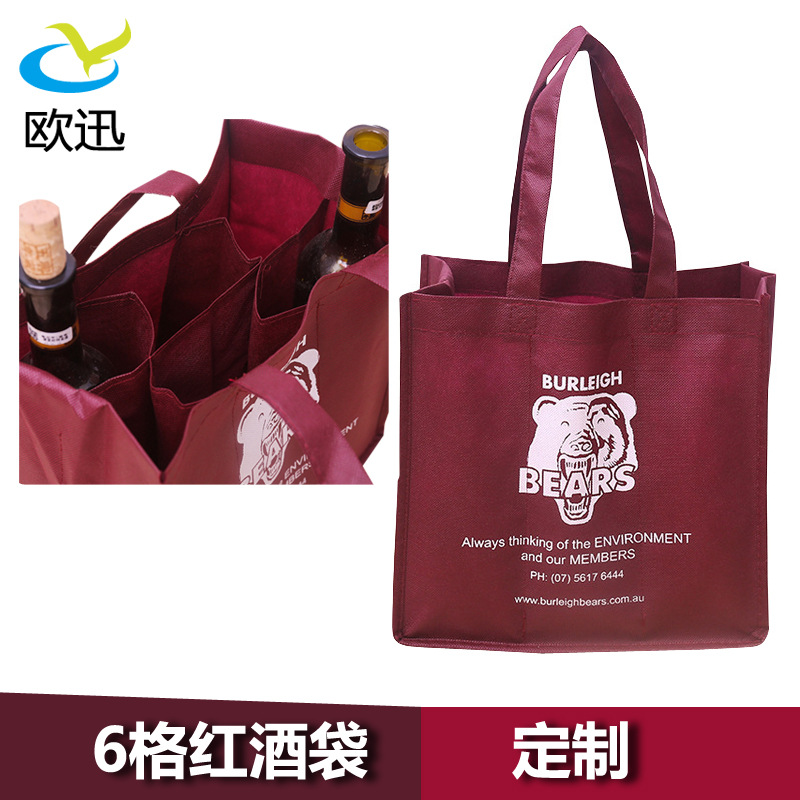 厂家定制分格无纺布酒袋隔层红酒礼品袋六瓶装啤酒包装袋定做logo