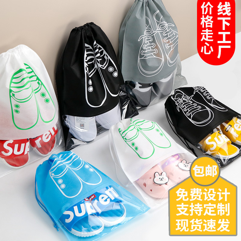 现货旅行家用收纳鞋袋无纺布可视窗束口防尘袋洗鞋店鞋子包装袋子