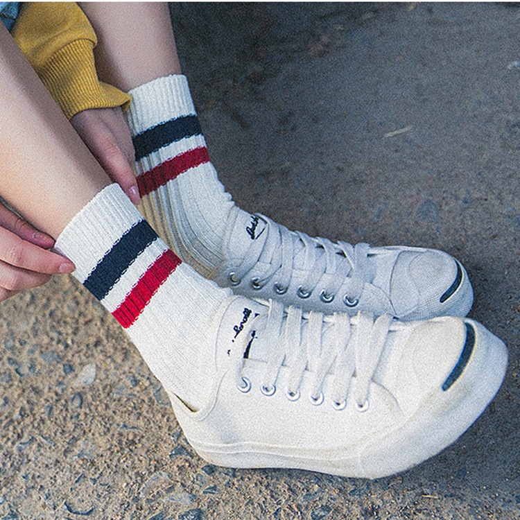 男士运动风休闲袜子 条纹透气春夏男士运动袜子 诸暨袜子批发