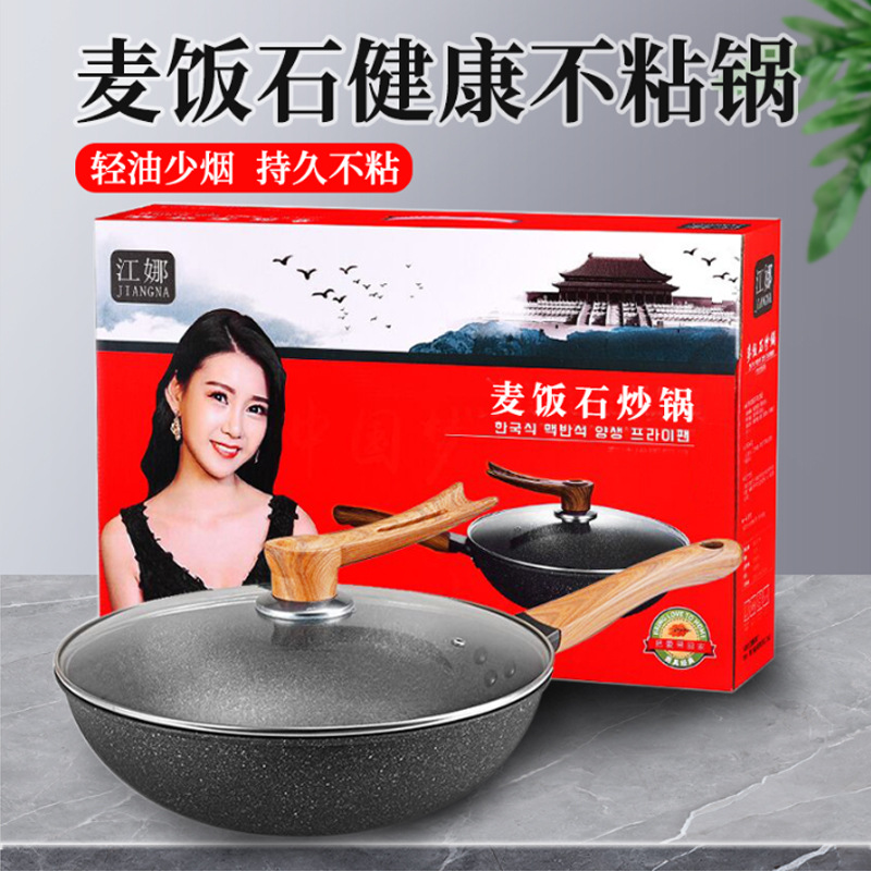 厂家批发韩式麦饭石不粘炒锅家用平底不粘锅套装锅具平底麦饭石锅