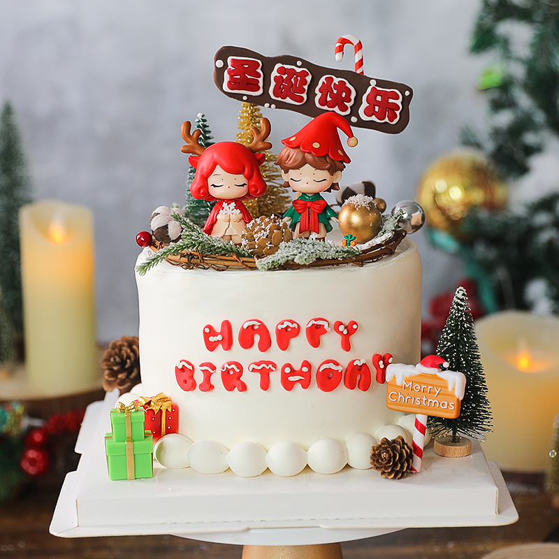 圣诞节蛋糕装饰森系麋鹿精灵娃娃