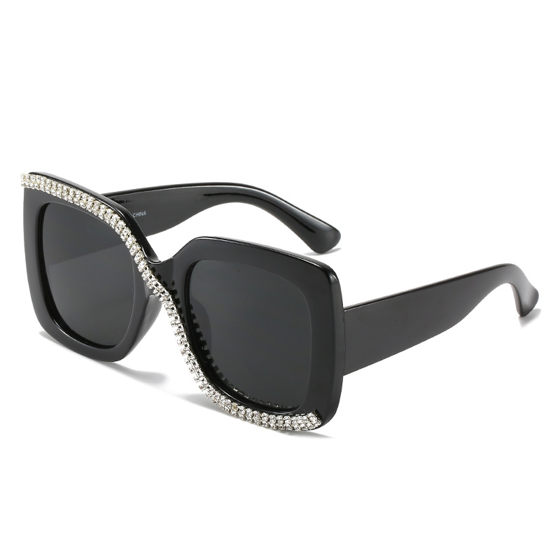 2020新款镶钻太阳镜 欧美网红同款手工钻石眼镜 时尚百搭方框墨镜