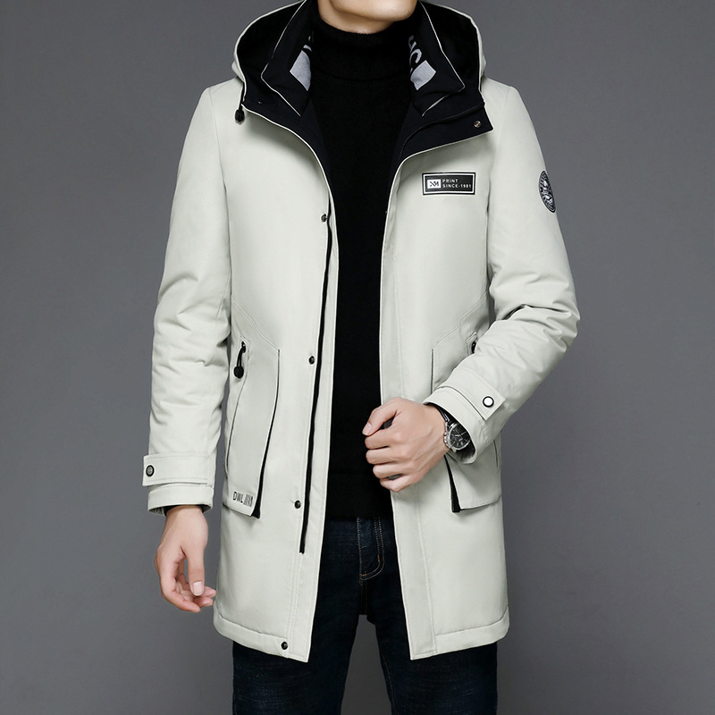 2021秋冬新品潮流男士羽绒服纯色中长款白鸭绒上衣保暖外套男装