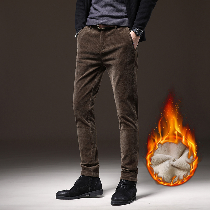 2021新款冬男士灯芯绒休闲裤潮流加绒加厚直筒保暖商务纯色休闲裤