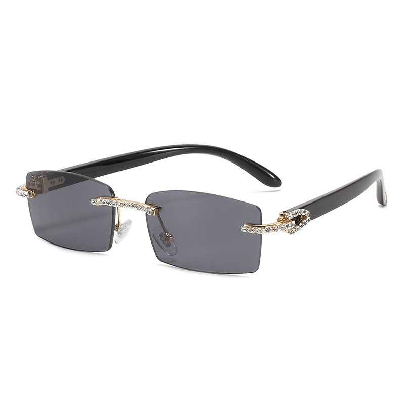 2021新款个性镶钻太阳镜 欧美潮流钻石切边方形眼镜 网红街拍墨镜