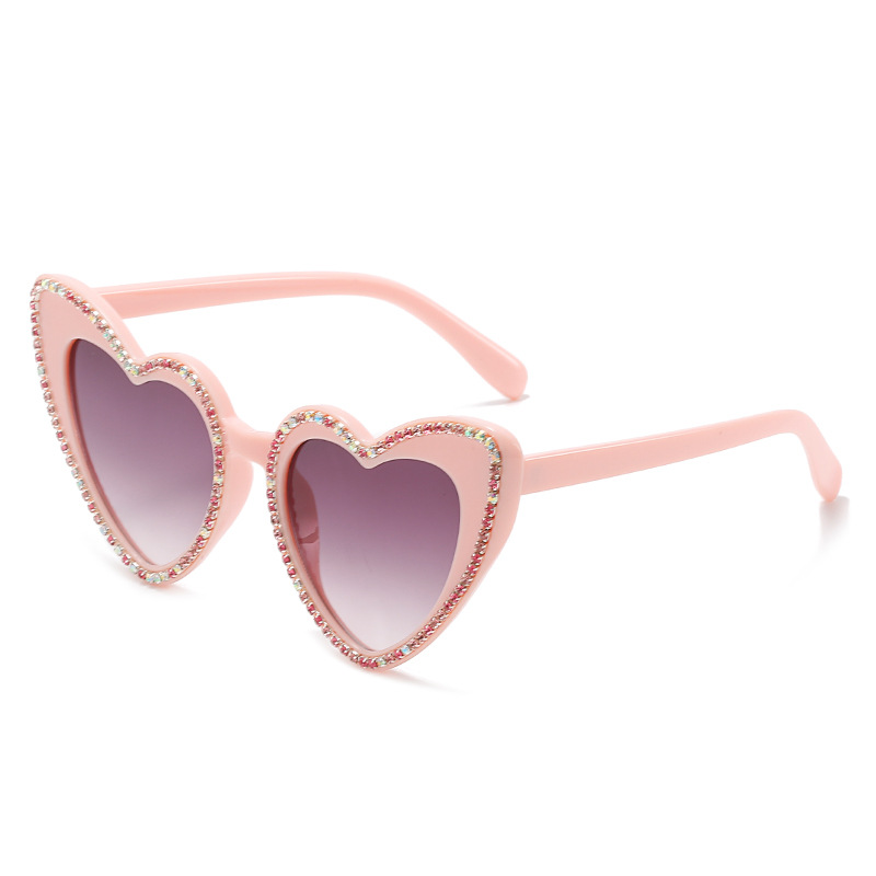 2021新款镶钻太阳镜 欧美时尚爱心钻石眼镜 街拍可爱桃心墨镜女