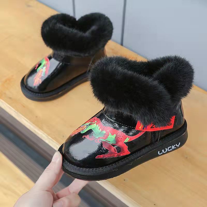 男童棉鞋2021冬季新款儿童雪地靴加厚防水防滑女童小童皮面马丁靴