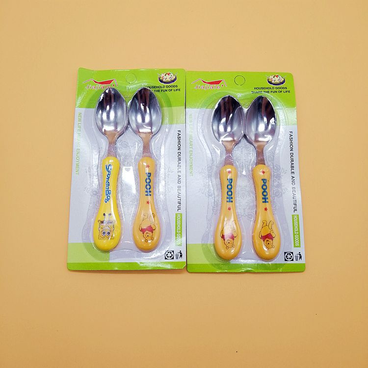 创意卡通不锈钢勺子 可爱塑料手柄调羹儿童防烫勺 两元店热卖货源