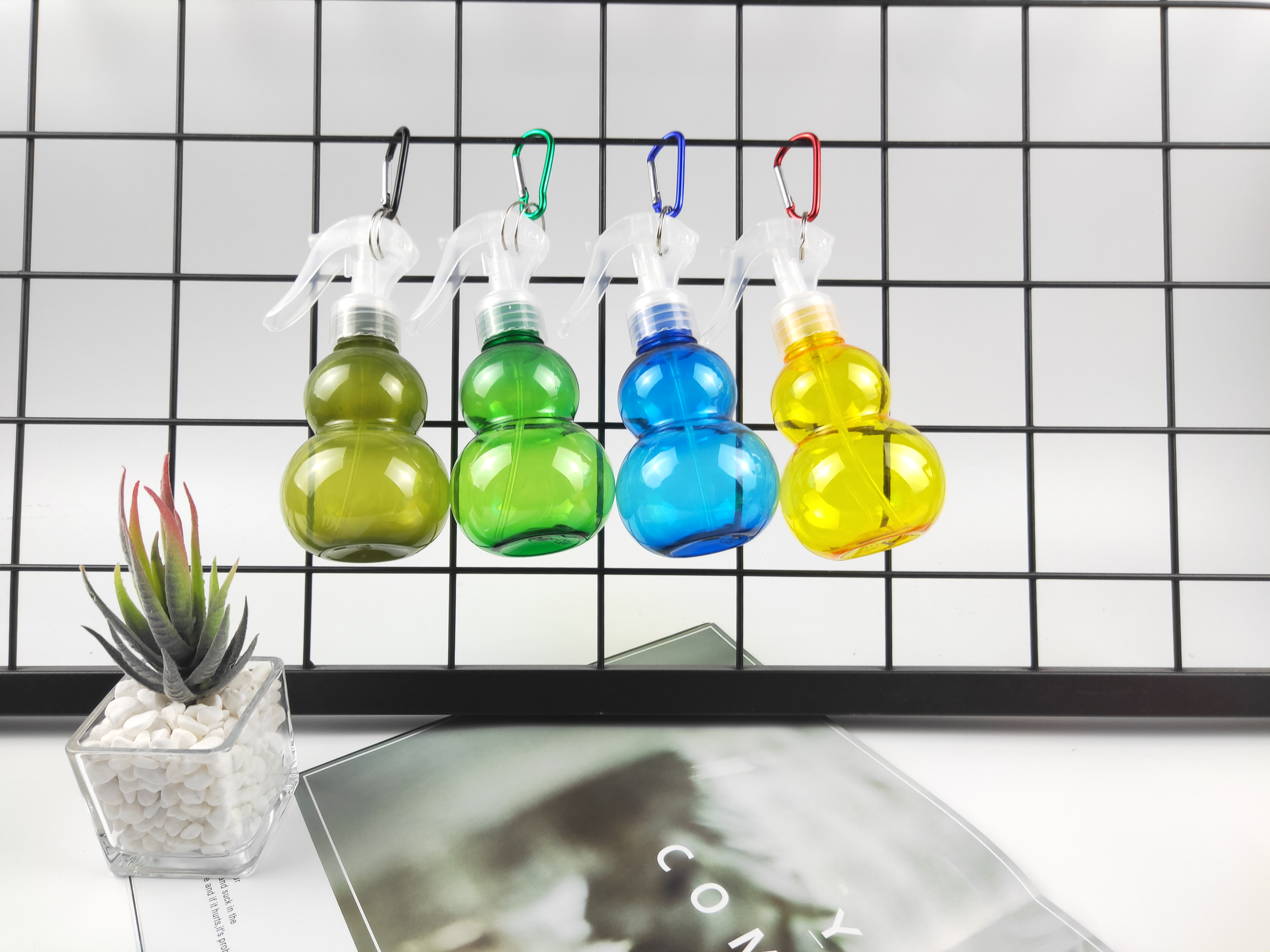 厂家热销日用品200ML多颜色PET塑料葫芦瓶配小老鼠喷枪消毒挂钩瓶