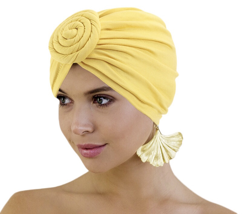 新款竹纤维盘花头巾帽 打结包头帽 化疗帽 亚马逊热卖货源 http:/