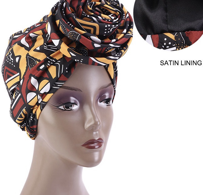 非洲印花色丁内衬头巾帽 盘花帽 民族风时装帽 婚礼帽子 TJM-467