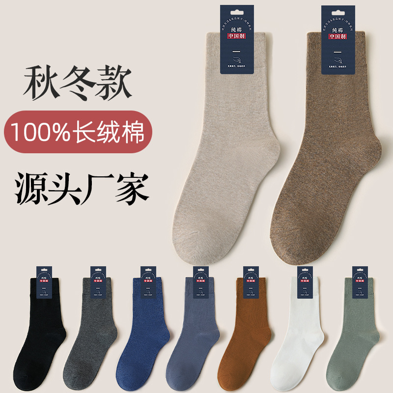 袜子男纯棉长袜男士棉袜中筒袜春秋长筒袜全棉纯色运动袜长绒棉潮