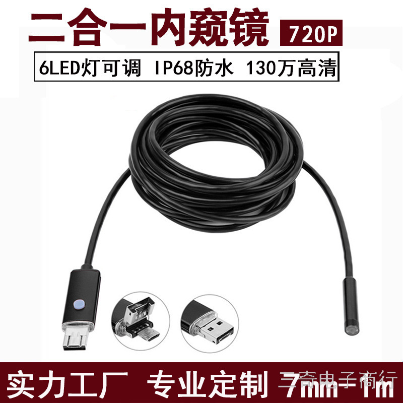 1米二合一高清7mm安卓手机电脑两用防水内窥镜汽修空调内窥镜
