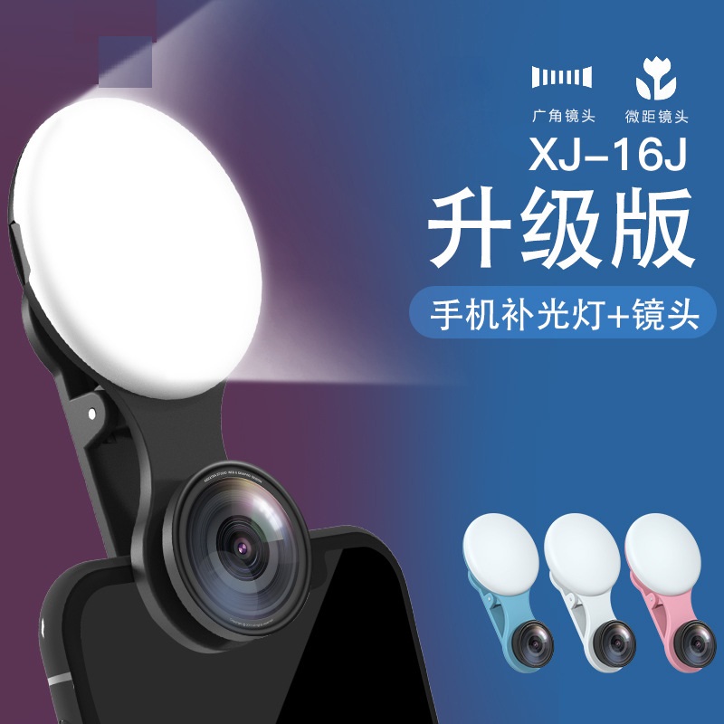 XJ16J手机镜头 LED手机补光灯神器 美颜自拍灯广角微距摄影闪光灯