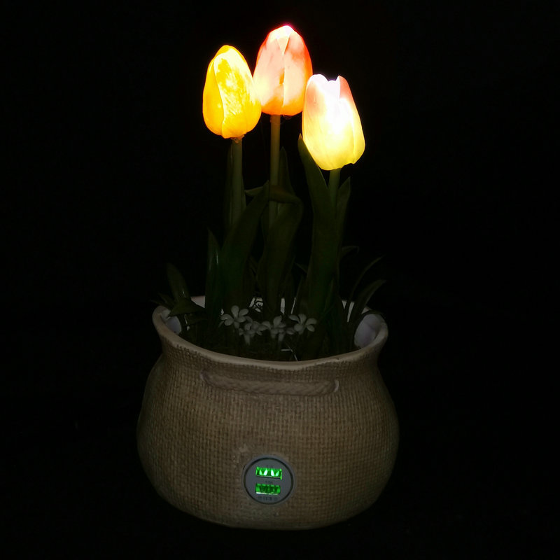 花卉LED小夜台灯 装饰客厅LED花小夜灯 手机充电功能led仿真花灯