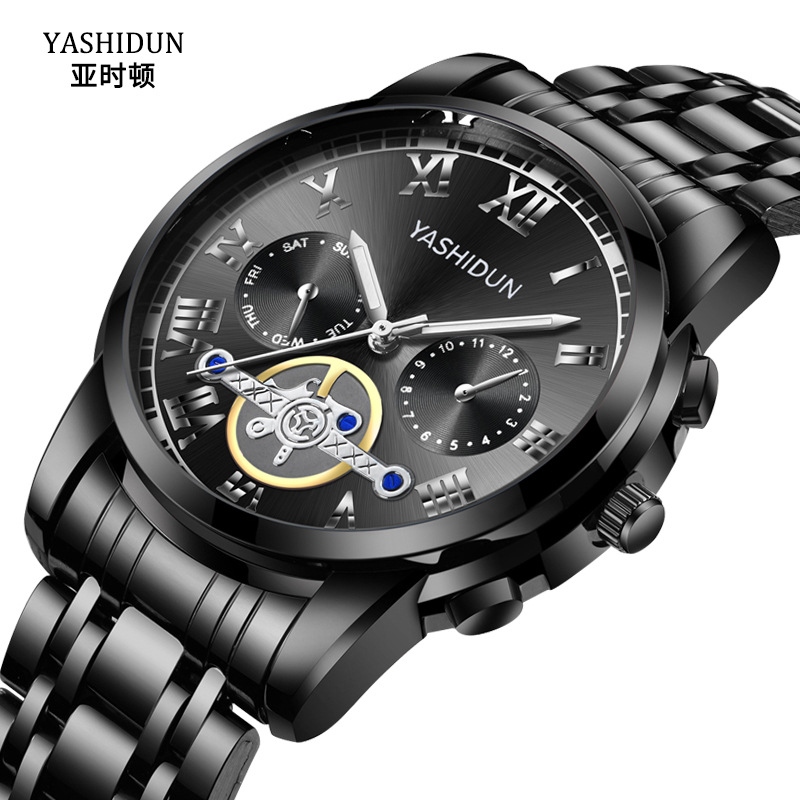 男士手表跨境爆款工厂批发夜光防水皮带表商务潮流石英钢带手表男