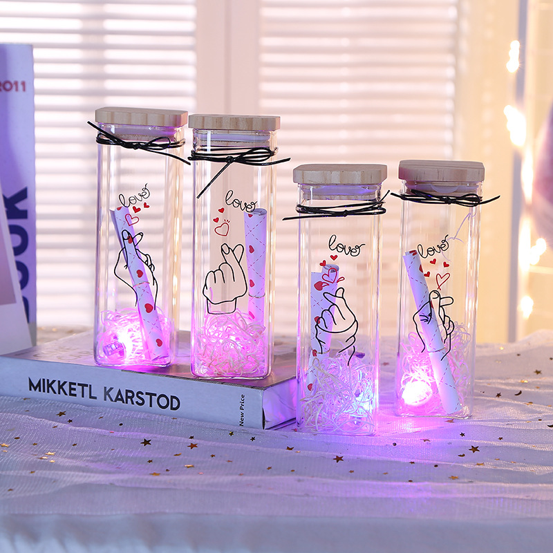方形比心玻璃许愿瓶可爱办公室桌面摆件 厂家批发情人节礼品