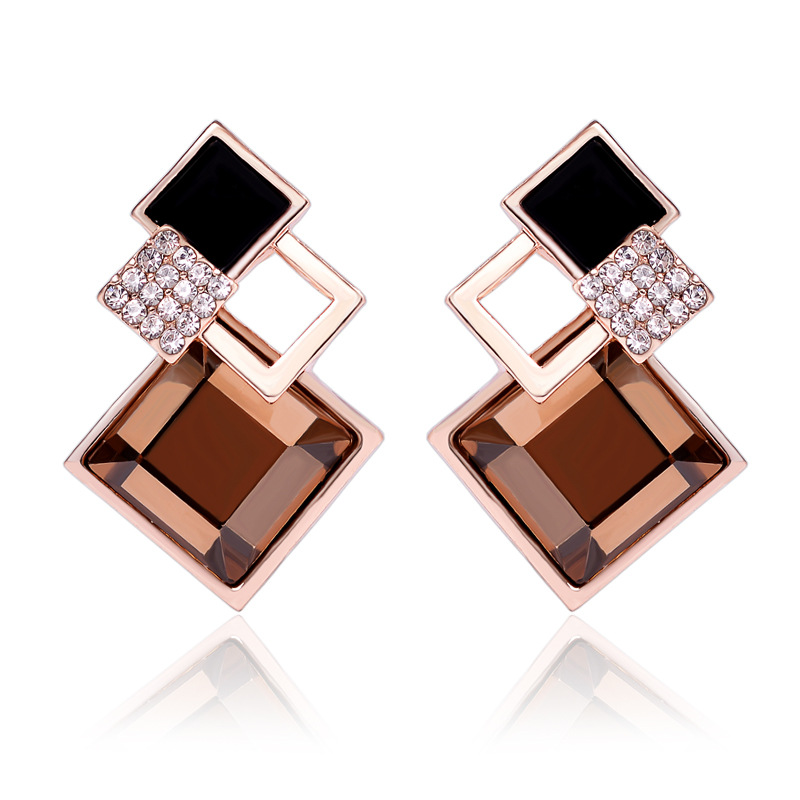 S925银针韩国时尚百搭气质菱形水晶耳环女 夸张几何耳钉 厂家批发
