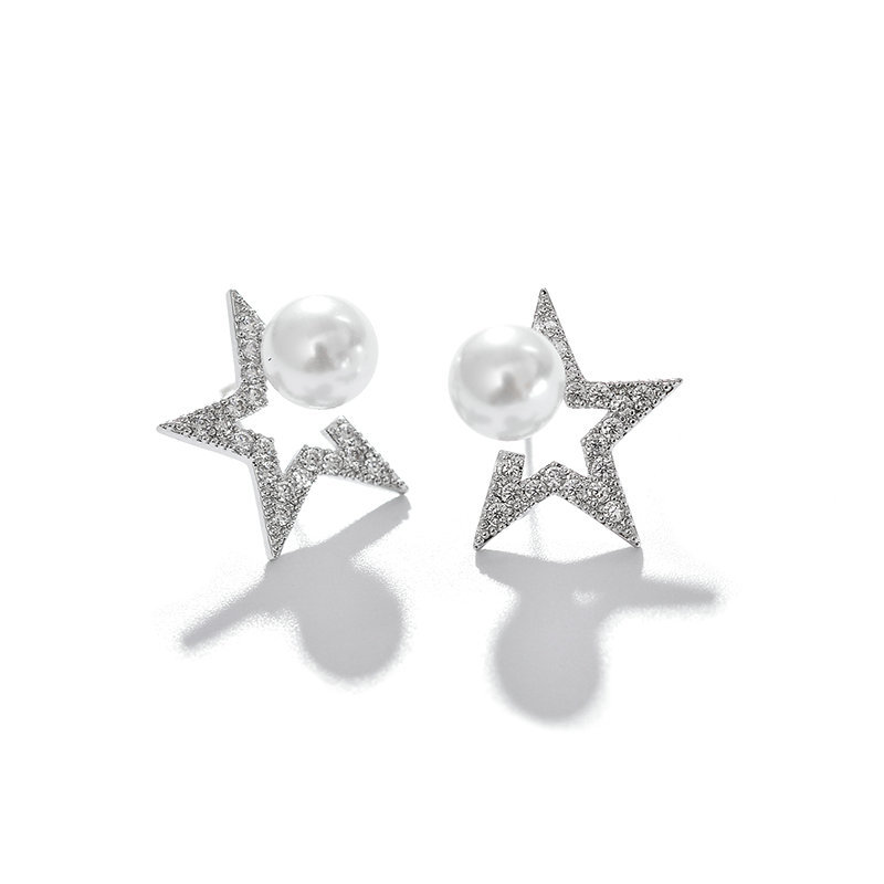2018新款S925银耳针珍珠耳钉女气质韩国个性百搭星星耳环厂家批发