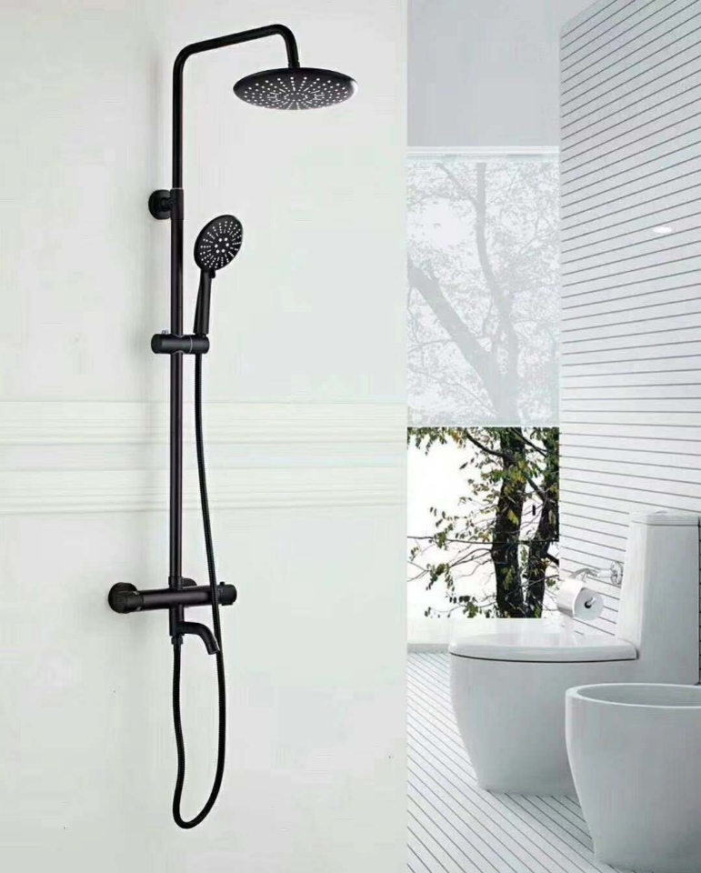 恒温顶喷花洒黑圆方花洒带托盘电镀恒温大喷恒温水龙头洗澡不怕烫