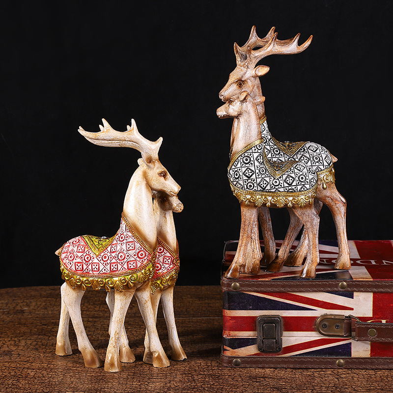 子母鹿树脂工艺品摆件 新款创意小麋鹿摆件 客厅书房摆件 现货
