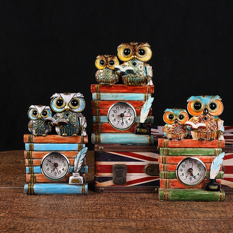 厂家直供 猫头鹰树脂家居摆件钟表 客厅酒柜书房树脂装饰摆件钟表