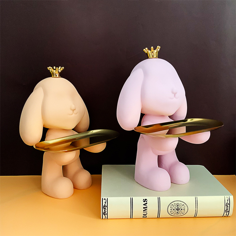 简约动物树脂工艺品摆件皇冠兔子托盘收纳创意装饰工艺品客厅玄关