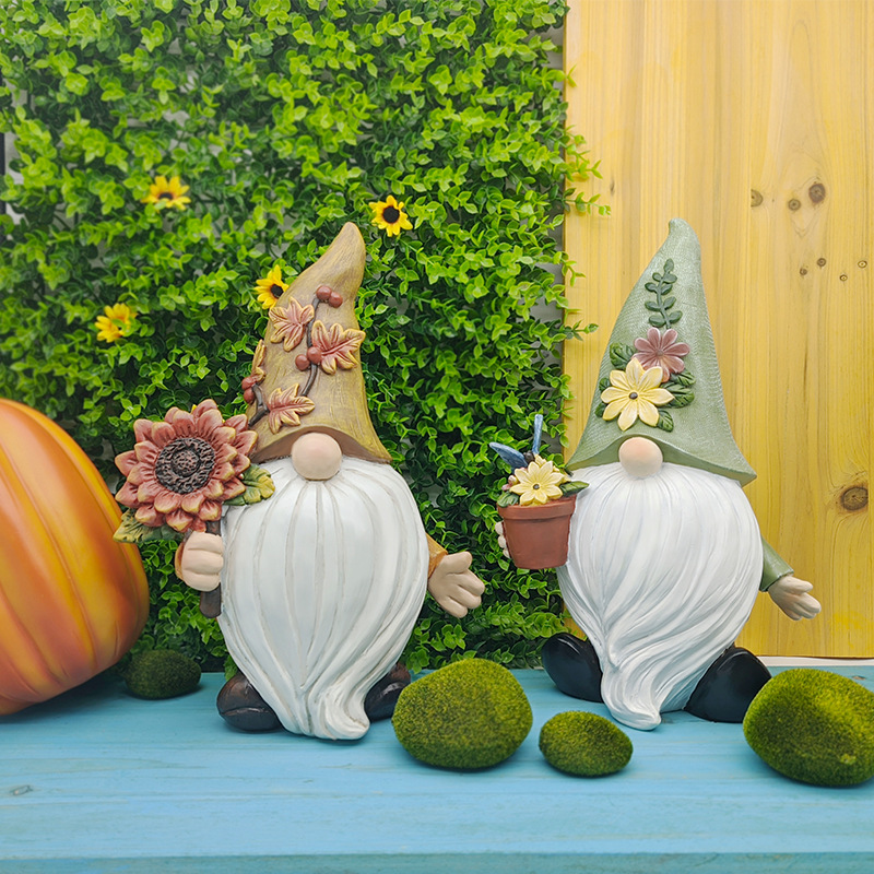 跨境货源 丰收节向日葵无脸地精万圣节摆件树脂工艺品庭院装饰品