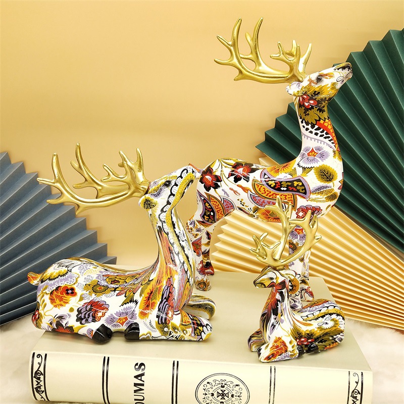 北欧新奇炫彩情侣鹿创意树脂工艺品摆件客厅家居装饰品结婚礼品