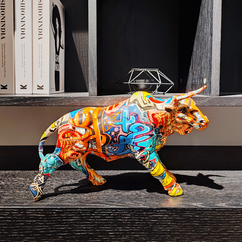 北欧涂鸦牛摆件创意炫彩树脂工艺品家居客厅酒柜办公室桌面装饰品